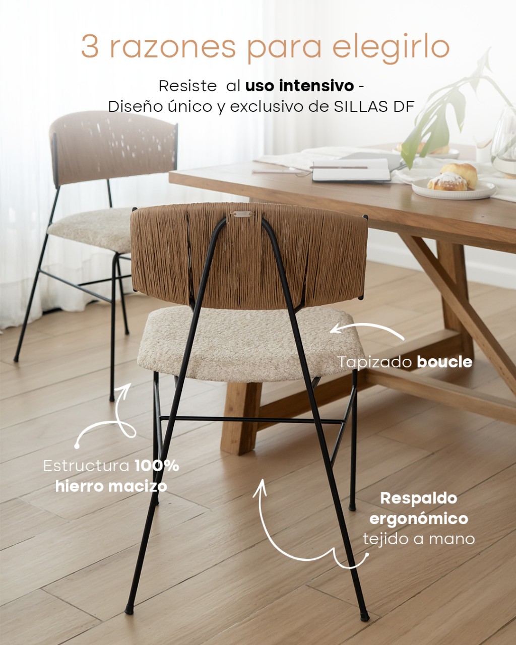 La calidad de una silla no está en un solo detalle aislado, sino en la suma de decisiones bien pensadas. Materiales, estructura y diseño trabajan juntos para que una silla no sea solo linda, sino también funcional y duradera.