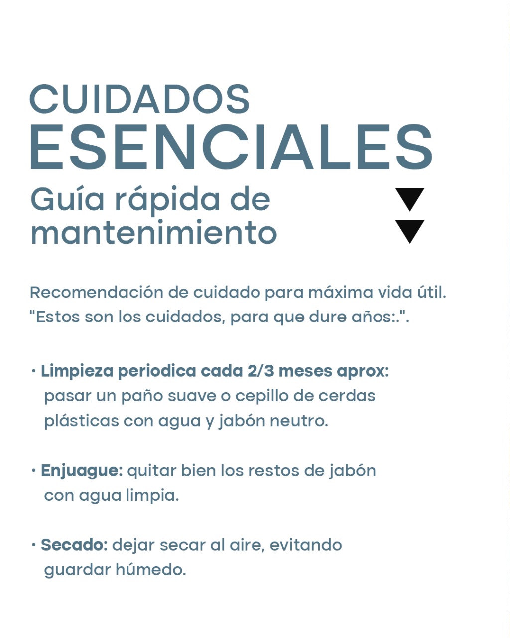La limpieza periódica es clave. Cada dos o tres meses, alcanza con pasar un paño suave o un cepillo de cerdas plásticas con agua y jabón neutro. Luego, es importante enjuagar bien para eliminar restos de jabón y dejar secar al aire, evitando guardarlo húmedo.