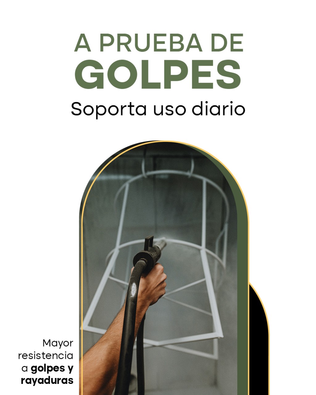 Uno de los principales beneficios del powder coating es su resistencia mecánica. Soporta mejor golpes accidentales, roces frecuentes y el movimiento constante típico de sillas, banquetas y sillones.