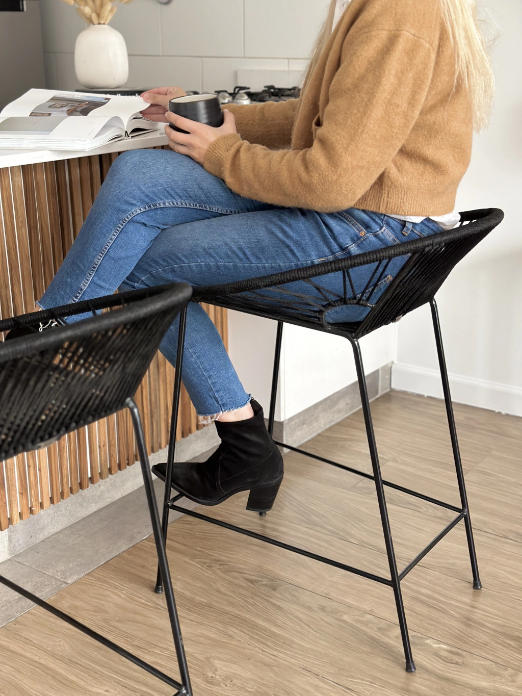 Gracias a su forma envolvente y dimensiones equilibradas, esta banqueta es tan cómoda como funcional: perfecta para barras, mesas altas o incluso como asiento ocasional en espacios interiores o semicubiertos.