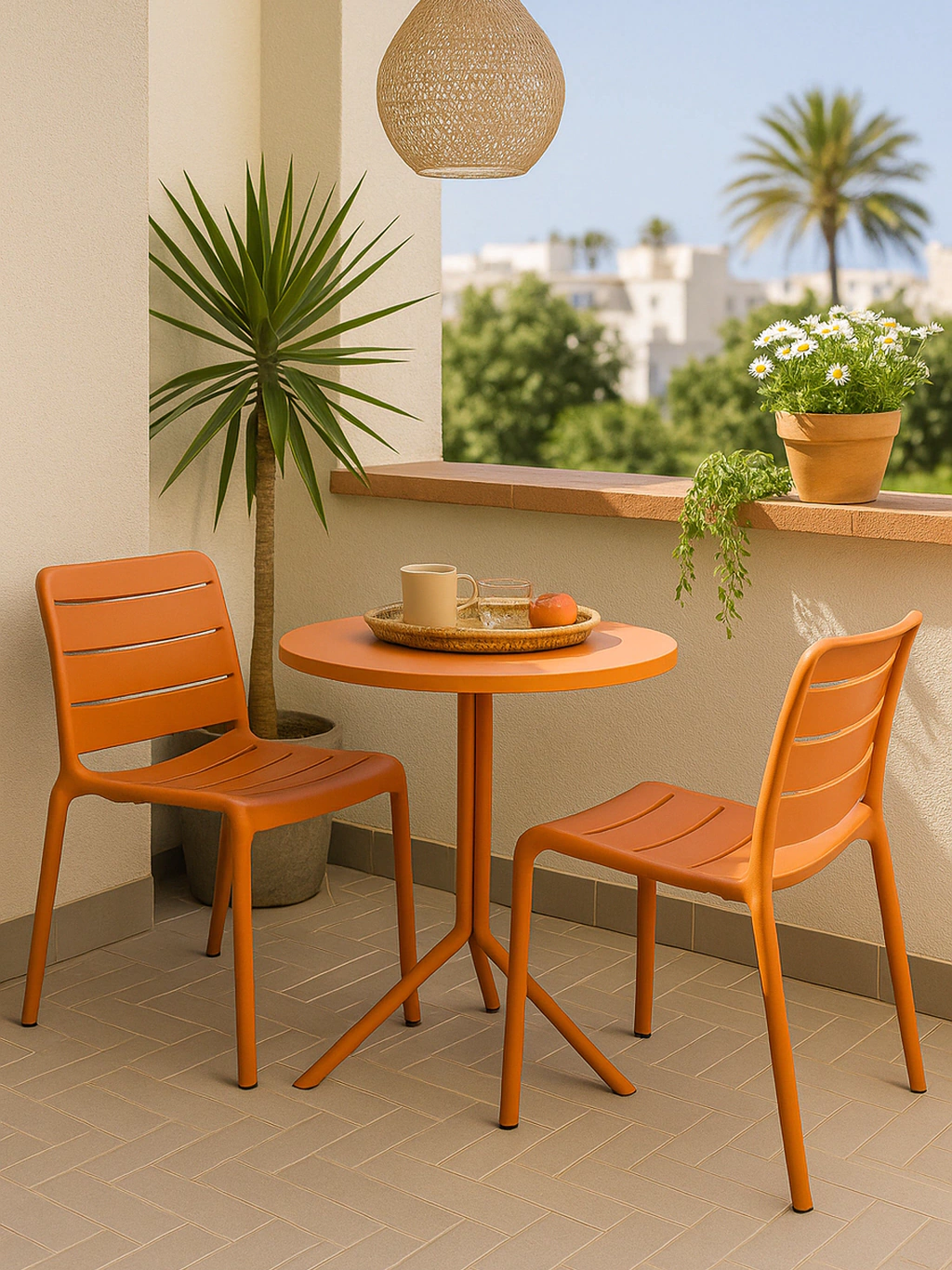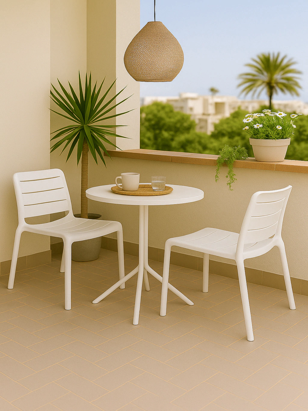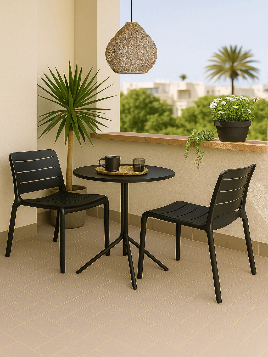 Diseñado especialmente para balcones y terrazas urbanas, el Set Palermo combina practicidad, diseño y durabilidad en un conjunto pensado para el aire libre.