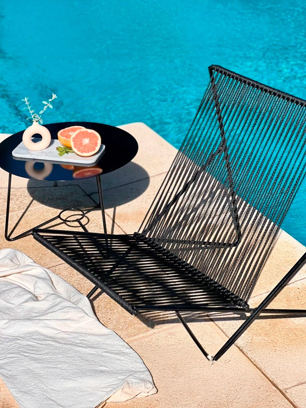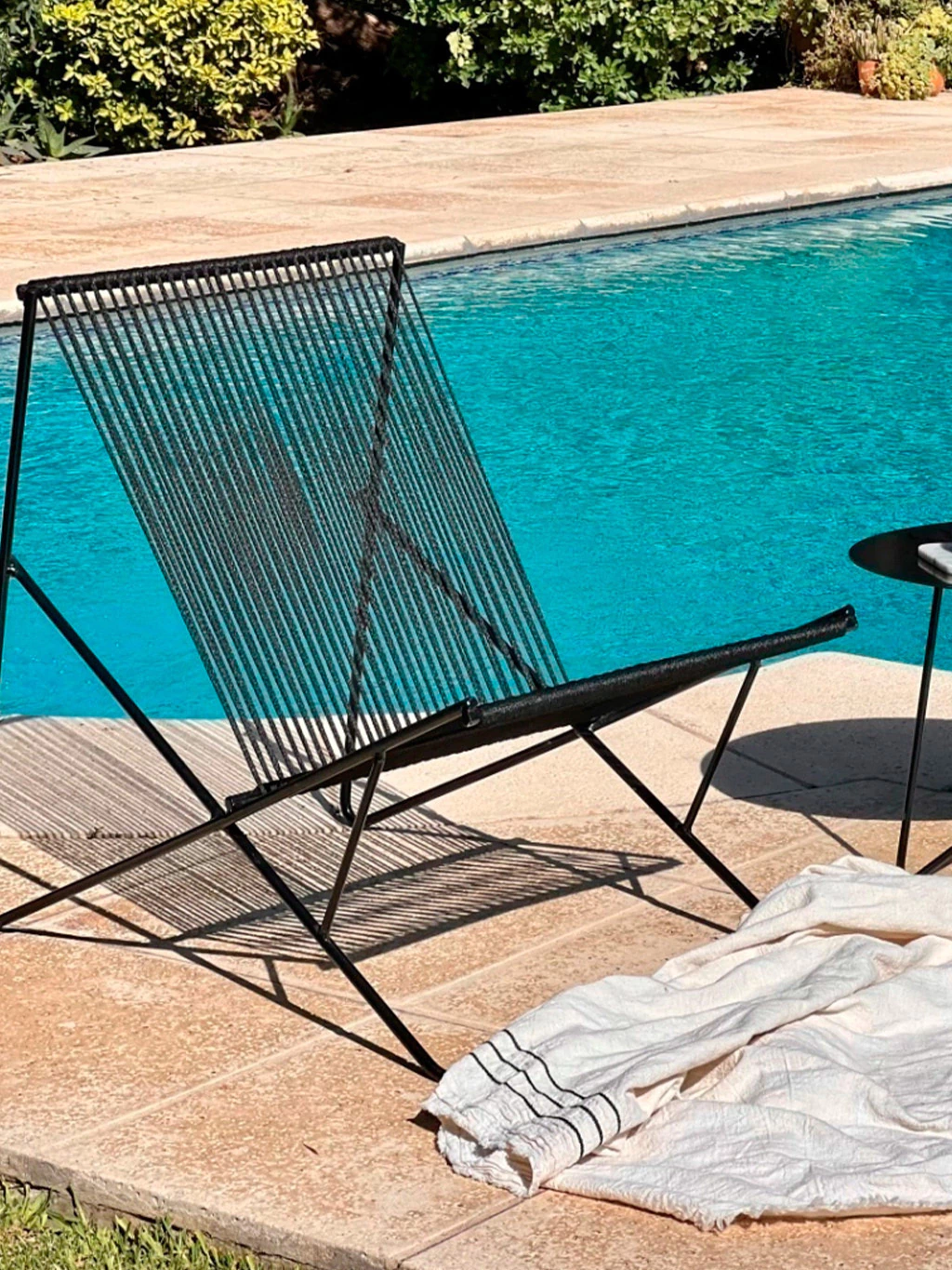 Nuestra silla Cuba L combina líneas simples y una estética moderna con la calidez del trabajo artesanal. Confeccionada en hierro macizo y tejida íntegramente a mano en cordón náutico, ofrece un equilibrio perfecto entre resistencia, confort y estilo.