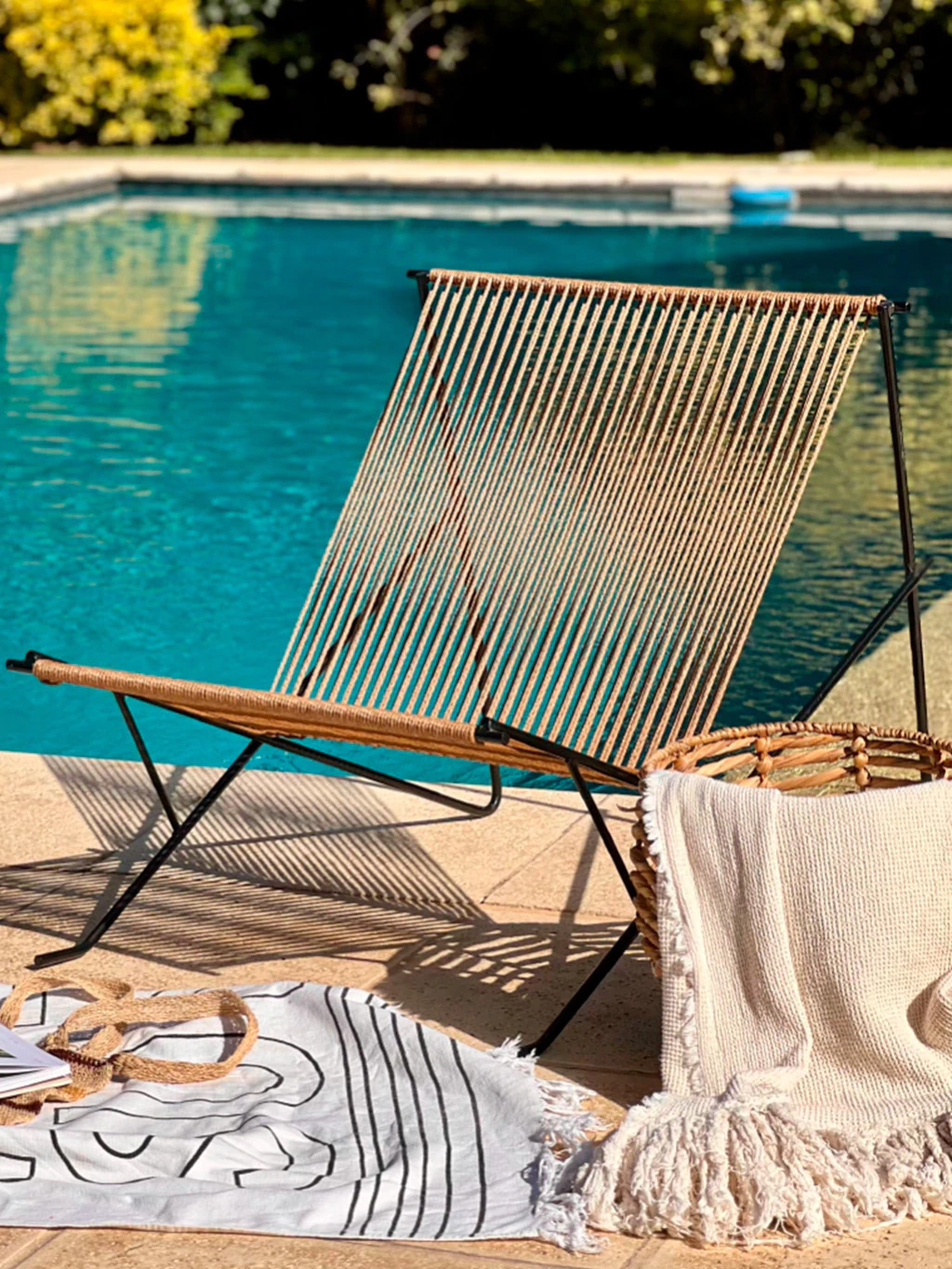 Su estructura firme brinda excelente soporte lumbar, mientras que el tramado artesanal se adapta al cuerpo generando una sensación envolvente que invita al descanso. Su diseño liviano permite moverla con facilidad, convirtiéndola en una opción ideal para patios, terrazas o galerías donde el diseño y la comodidad se fusionan naturalmente.