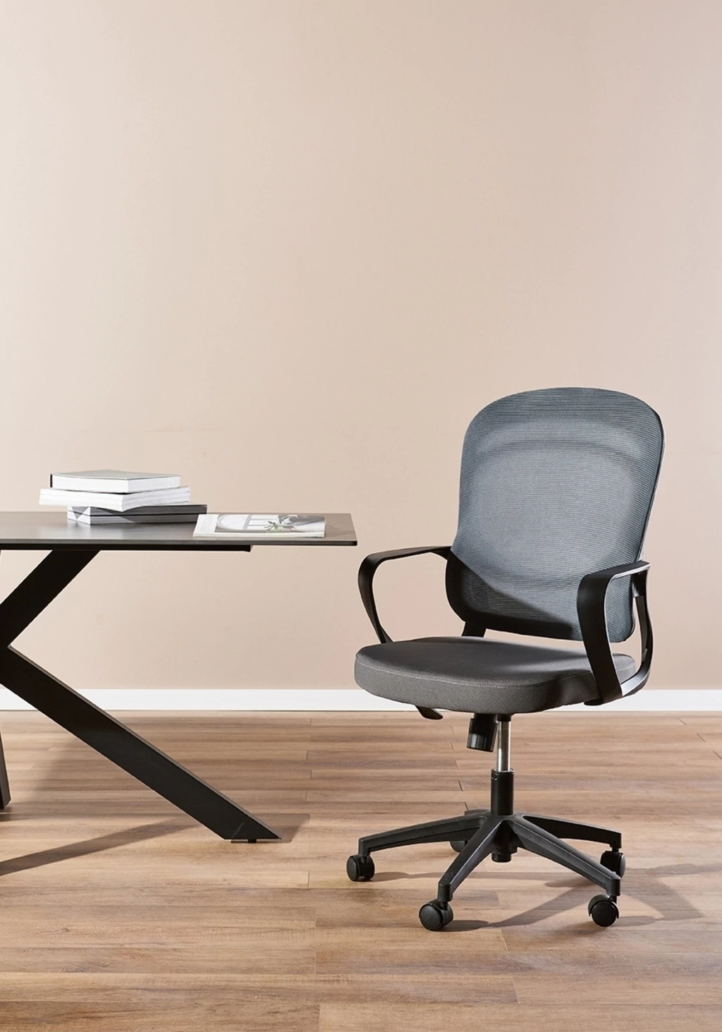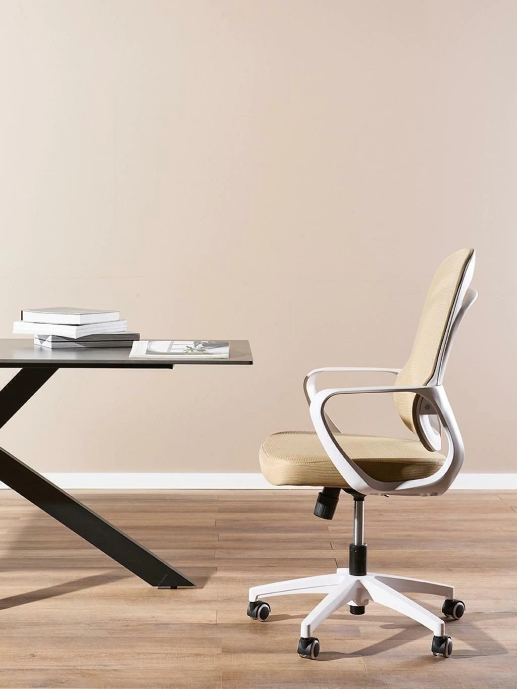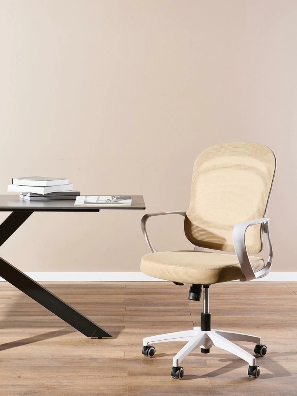 Diseñada para combinar confort y estilo, nuestra silla de oficina Alba se adapta a cualquier espacio de trabajo moderno. Su diseño versátil está disponible en cuatro combinaciones: visón con estructura blanca, visón con estructura negra, gris con estructura negra y negro total, permitiéndote elegir la que mejor se adapte a tu entorno.
