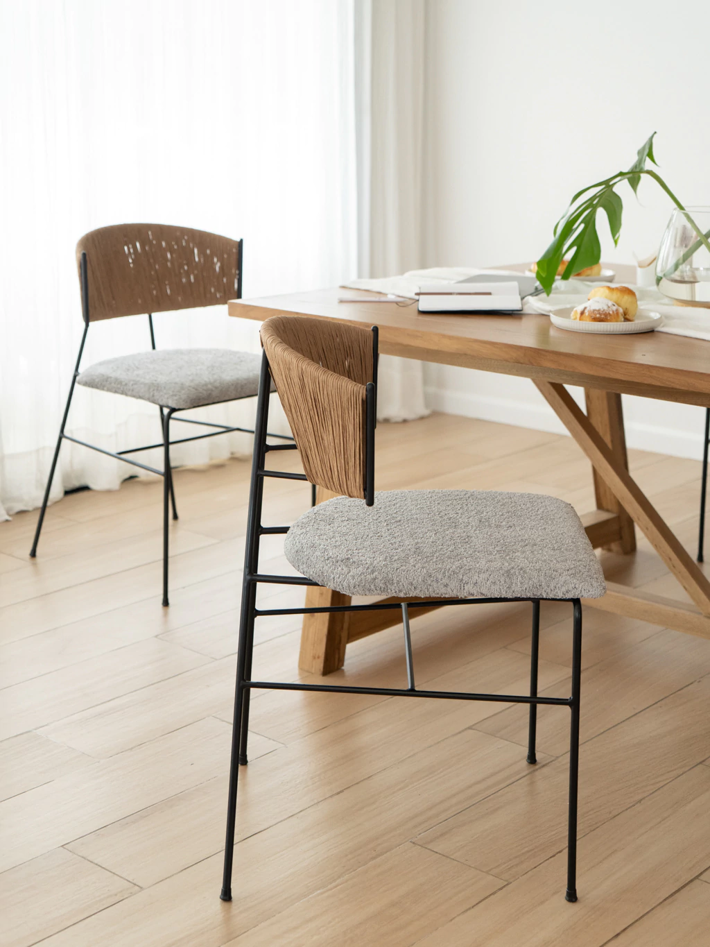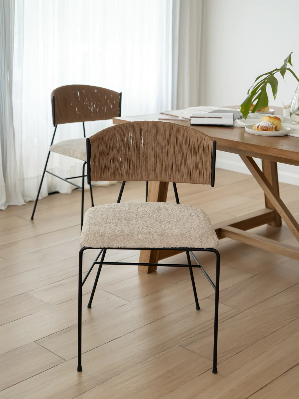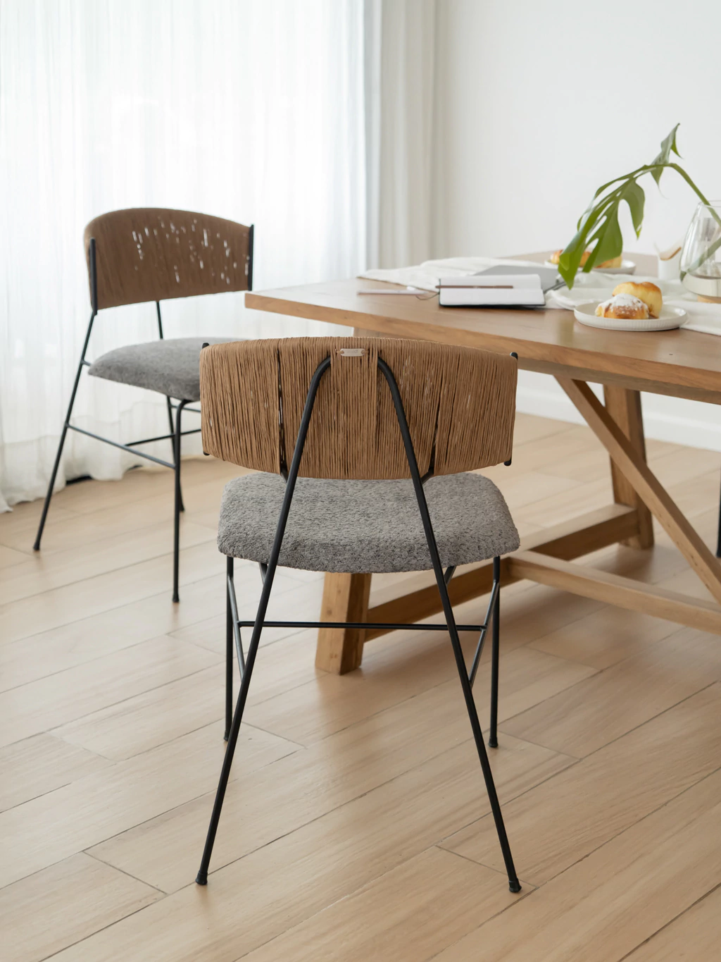 Tejido en papel Kraft de 5 mm, aporta un estilo artesanal contemporáneo, mientras que los apoyabrazos integrados elevan la experiencia de uso con mayor soporte y comodidad.