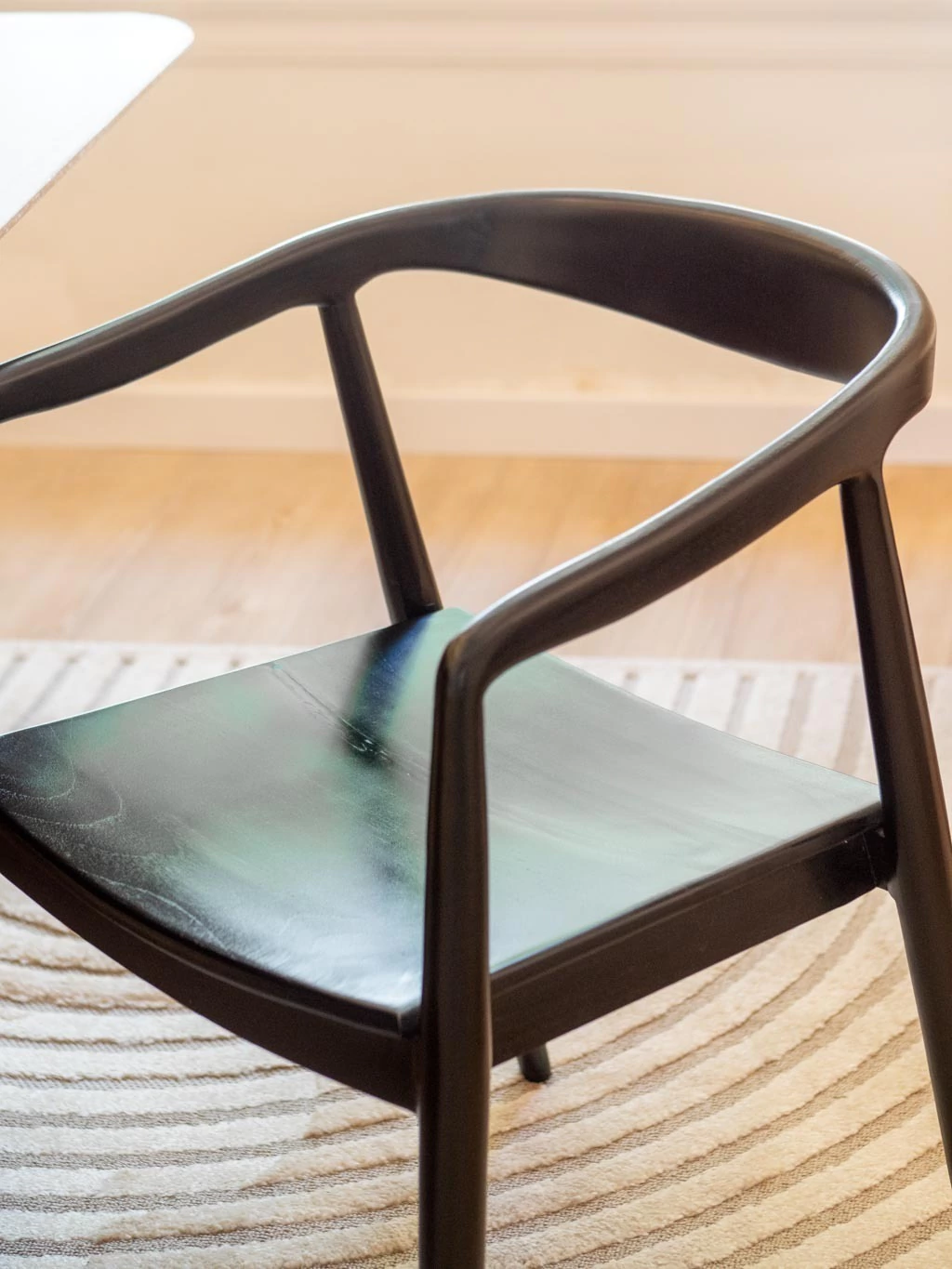 Nuestra silla Talma se presenta como una pieza que combina estética contemporánea, comodidad real y un uso práctico para el día a día. Su respaldo envolvente acompaña la curvatura natural de la espalda, ofreciendo soporte y una sensación de descanso inmediata, mientras que los apoyabrazos integrados aportan mayor confort para permanecer sentado durante largos períodos.